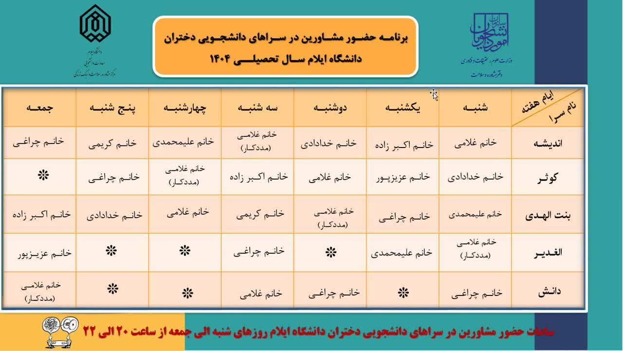مرکز مشاوره، سلامت و سبک زندگيبرنامه حضور مشاور در خوابگاه ها
