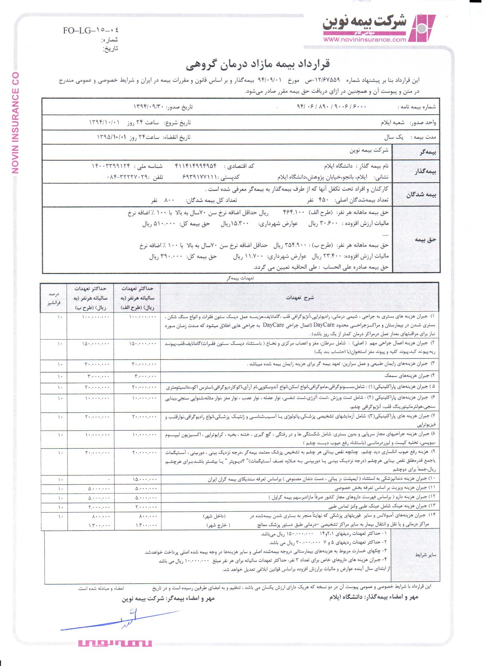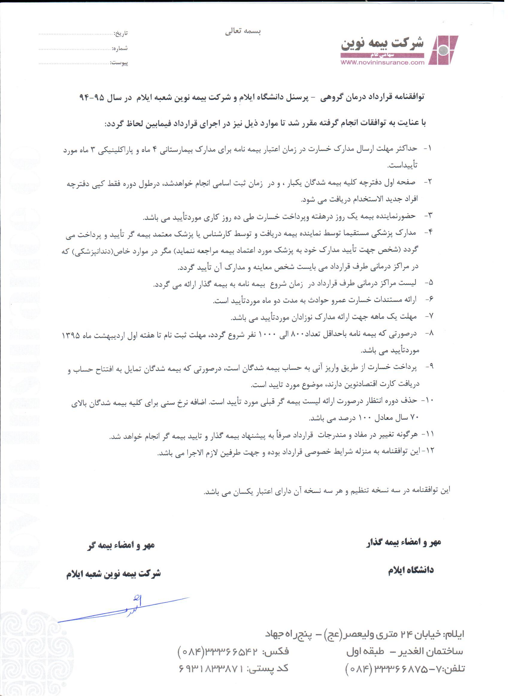 قابل توجه کليه اعضاي محترم هيأت علمي و کارکنان دانشگاه جهت ثبت نام بيمه تکميلي درمان با بيمه نوين تا تاريخ 94/11/14   نسبت به تکميل فرم و تحويل به اداره رفاه اقدام نمايند .