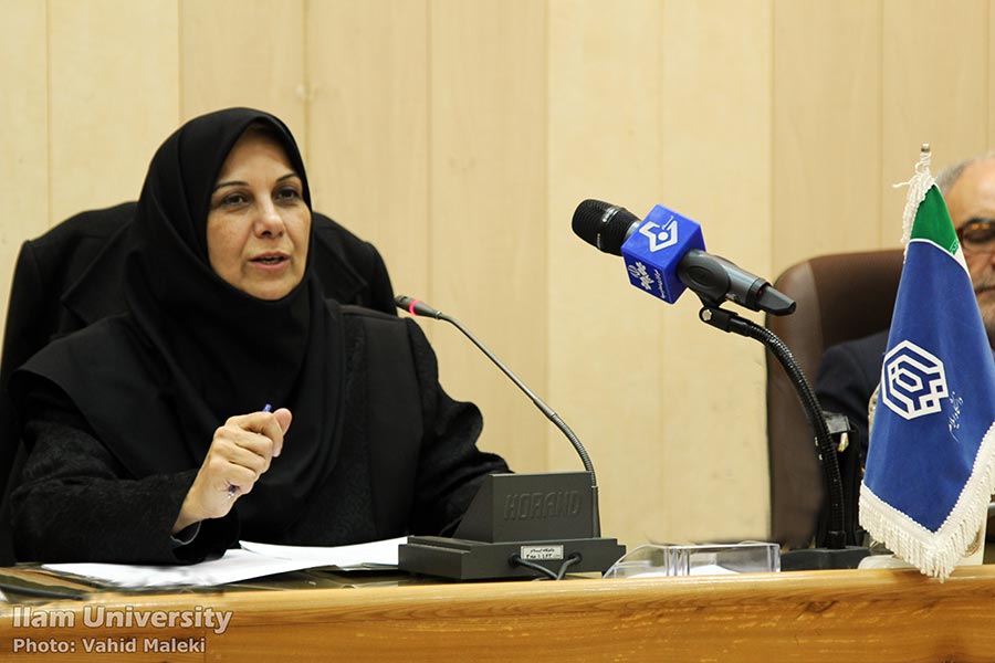 دکتر مهدخت بروجردي، مشاور وزير علوم، تحقيقات و فناوري و مديرکل روابط عمومي وزارت علوم در جمع مديران و کارشناسان ادارات و اصحاب رسانه استان ايلام در سمينار تبيين نقش و جايگاه رسانه در گفتمانسازي اقتصاد مقاومتي