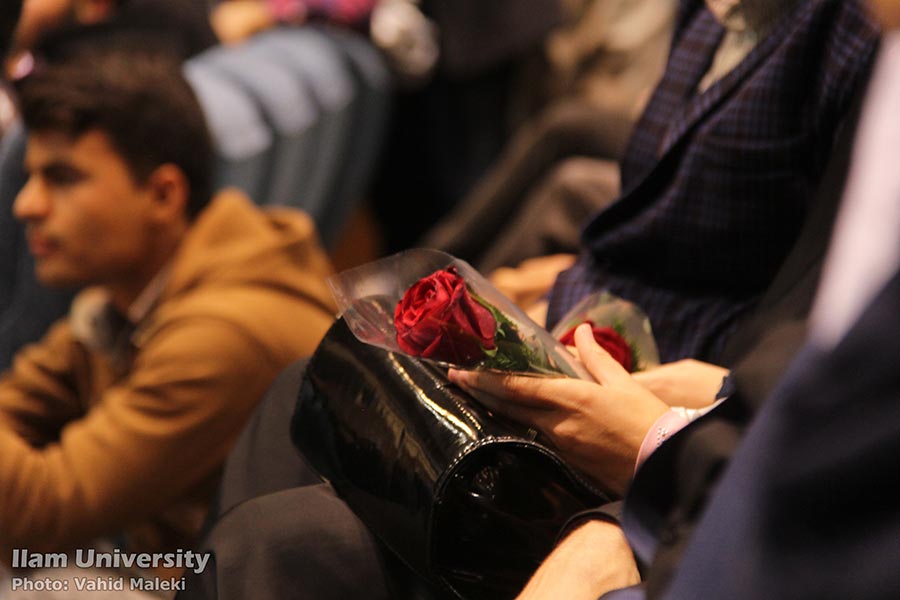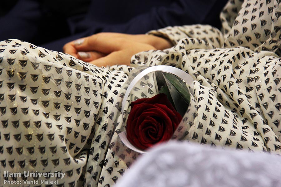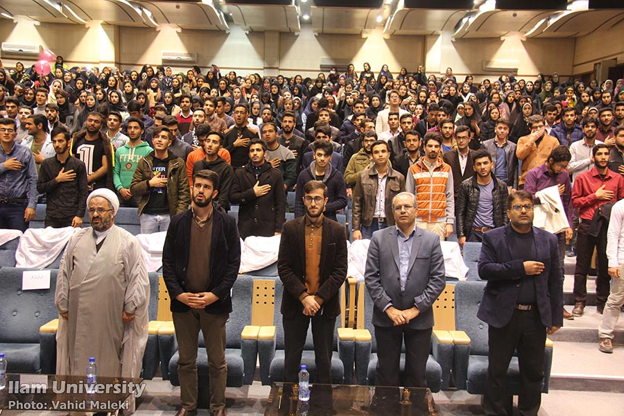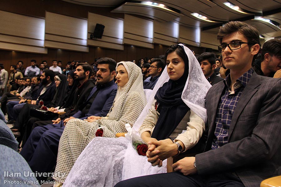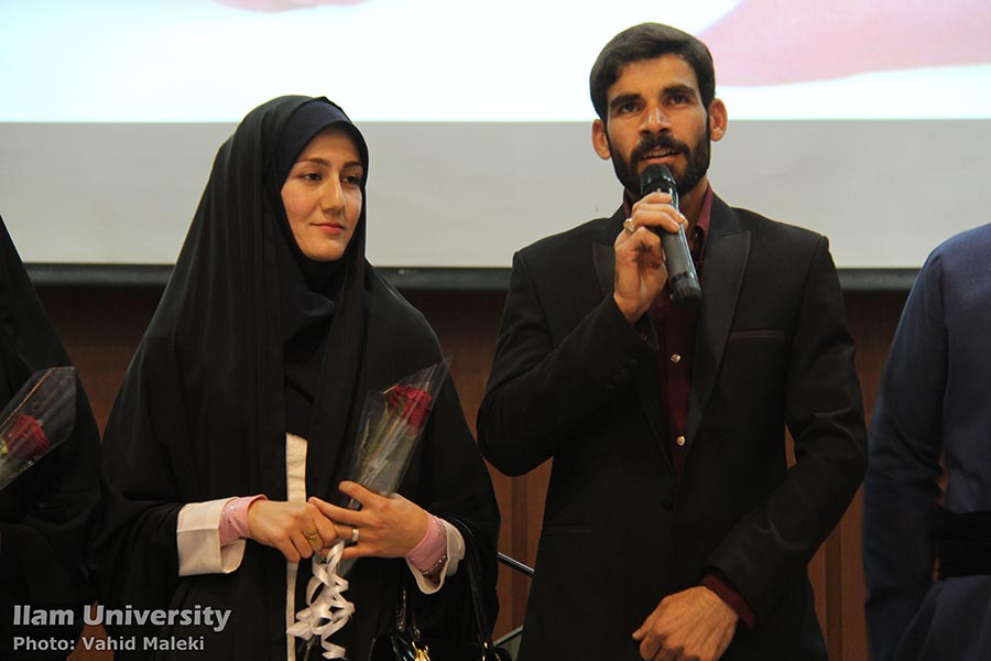زوجهاي دانشجوي بعداز قرائت قرآن کريم و پخش سرود جمهوري اسلامي در ميان تشويق حاضران وارد سالن شدند و دانشجويان به احترام اين عزيزان ايستاده از آنها استقبال کردند.