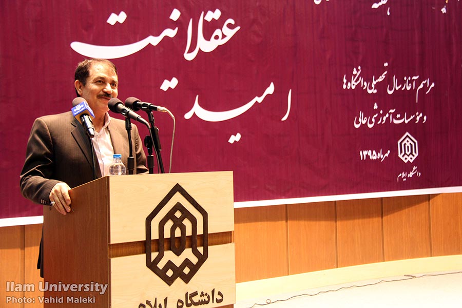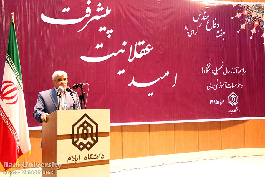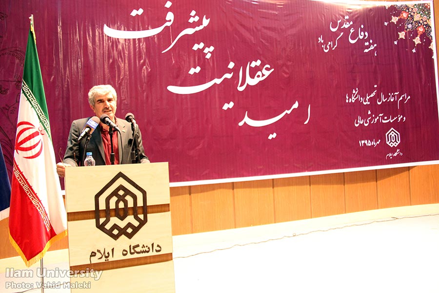 دکتر محمد علياکبري، رئيس دانشگاه، ضمن تبريک هفته دفاع مقدس و تبريک به مناسبت آغاز سال تحصيلي و خير مقدم خدمت دکتر فرهادي وزير علوم، و ميهمانان و دانشگاهيان و تقدير از حسن انتخاب وزارت علوم براي برگزاري جشن آغاز سال تحصيلي جديد در دانشگاه ايلام اظهار کرد: تقارن آغاز سال تحصيلي با هفته گراميداشت دفاع مقدس به صورت عام براي ملت ايران و به صورت خاص براي مردم استان ايلام تقارني مبارک است.