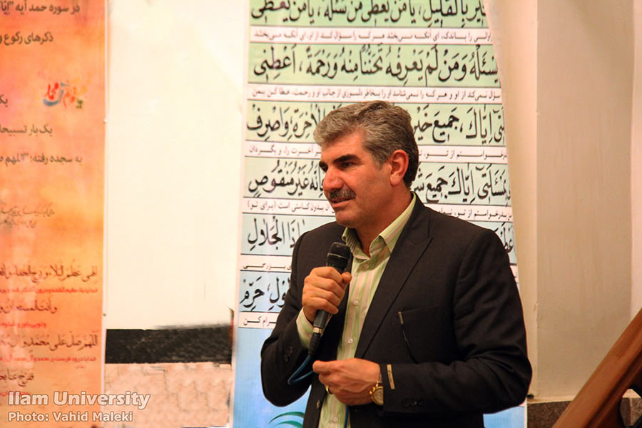 رئيس دانشگاه اظهار داشت: از شما به خاطر اينکه تابلو وجيهي از دانشگاه شده ايد و مسجد دانشگاه را به يکي از شلوغ ترين مساجد ايلام در امر اعتکاف تبديل نموده ايد تشکر مي کنم و اين اعمال شما آرزوي ما است که بتوانيم نخبگان عالم و متعهد همچون شما تربيت کنيم، فلسفه حضور بنده، حاج آقاي غياثي و حاج آقا هاشمي و ديگر همکارانم اين است که بتوانم عزيزان و جواناني از دانشگاه فارغ التحصيل کنيم که تک ساحتي نباشند هم در ساحت علم بدرخشند و هم در ساحت دين که الحمدالله شما نمونه هاي خوبي از اين دانشجويان هستيد.