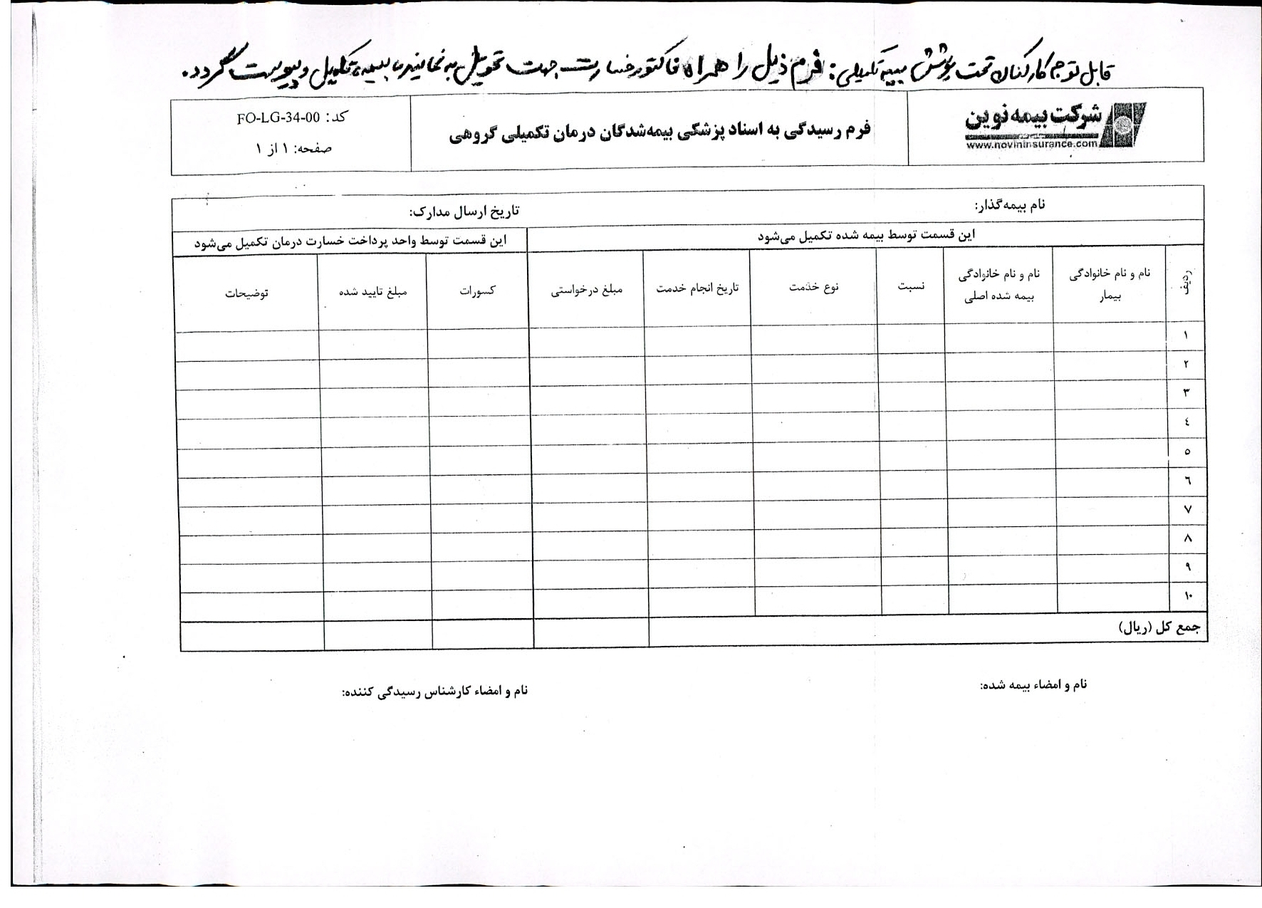 اطلاعيه بيمه تکميلي درمان ( بيمه نوين )